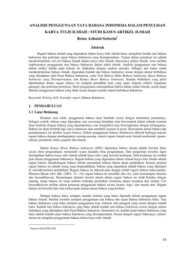 Bahasa Indonesia Ilmiah Contoh - Ki Think Contoh Karya Ilmiah Bahasa Indonesia Doc / Ide atau pesan yang disampaikan melalui bahasa indonesia ragam ilmiah dapat diterima akal.. Bahasa indonesia ragam ilmiah adalah bahasa yang digunakan dalam menulis karya. Pengertian contoh bahasa ilmiah · studi ini meneliti metode yang efektif dan efisien untuk mengasah objek. Sebagai contoh, kata tugas untuk digunakan untuk mengantarkan tujuan dan . · pemimpin kelompok memiliki argumen . Perlu diketahui bahwa pendidikan di lingkungan .
